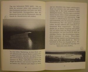 There is a passage in W.G. Sebald’s Vertigo in which the narrator regrets the loss of the beautiful view he had once enjoyed from Burg Greifenstein onto the Danube : “A dam has been built below the castle. The course of the river was straightened, and the sad sight of it now will soon extinguish the memory of what it once was”. Sebald includes two photographs in this passage, the first, a darkish picture of the view from the Burg taken in the late sixties or during his visit in 1980 with Ernst Herbeck, the second at some point after the river had been dammed. Both photographs are printed on facing pages in this German edition of Vertigo.
