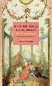 New York Review Books has just published When the World Spoke French by the French scholar and member of the Académie française Marc Fumaroli. This volume is a translation by Richard Howard of the somewhat more modestly titled Quand l’Europe parlait français, published in 2001 by Editions de Fallois. It focuses on an age when French was, as NYRB says, “the universal language of culture and intellectual life”. Indeed, “if you were a writer, thinker, or lover of la douceur de vivre (the sweetness of life) during the 18th century, you conversed and corresponded in French”, and in this volume, Fumaroli “presents a gallery of portraits of Europeans and Americans who conversed and corresponded in French, along with excerpts from their letters or other writings.”
