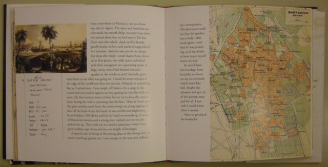 I’m always amazed at what I can come across in second-hand bookshops. Today I found a copy of the heavily illustrated / documented first novel The Tattoed Map by the Canadian novelist Barbara Hodgson. First published in 1995, a year before the first English translation of W.G. Sebald’s The Emigrants was published, this novel tells the story of Lydia, a woman traveller in North Africa who awakens one morning with a mark on her hand: the tattoo soon grows into a tattoo that turns out to be a map of an unknown territory. It contains a lot of visual material, from colour illustrations and maps to black and white photographs, from manuscript notes to printed documents in foreign languages. In this it seems both similar to and utterly different from what Sebald was doing, but it might still be worth reading.